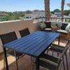 Dit modern ingerichte appartement van 76 m2 in Aqua Nature is gelegen op de 7e verdieping. Het appartement is voorzien van alle gemakken en hedendaags comfort. De ruimte is ingedeeld met een moderne open keuken (volledig ingericht met vaatwasser) heeft 2 slaapkamers, 1 slaapkamer met dubbel bed, 1 slaapkamer met 3 enkele bedden en 2 badkamers met beiden een douche. De living is ingericht met airconditioning zowel warm als koud, satelliet TV met Vlaamse zenders en NPO 1,2 en 3 en er is WiFi aanwezig. Het balkon is gelegen op het zuid-oosten en heeft een oppervlakte van 13 m2. Het balkon is volledig ingericht en vanaf hier heeft u een prachtig uitzicht op zee, de tuin waarin zich het zwembad bevindt en de stad Torrevieja.